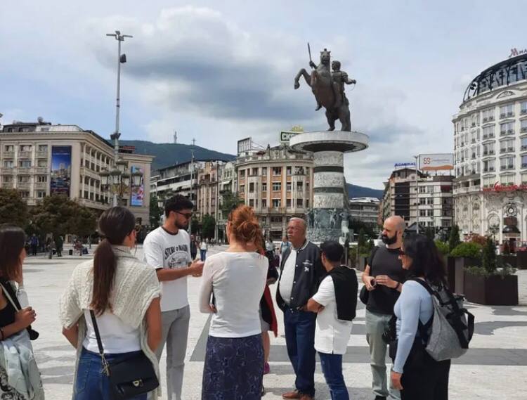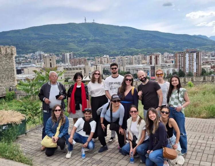 It began with a walk through various parts of the city, which became an introduction to historical-political controversies and the real-life multiculturalism of the Macedonian, Albanian, Turkish, Serbian, and Roma population groups. Is it North Macedonia or Macedonia? The answer was clear: “You insult us when you address us as ‘North Macedonians.'” So there is an official name and one that the citizens use. And to whom does the conqueror Alexander the Great (356-323 BCE) ‘belong’, the Greeks or the Macedonians? Does the distinction between Slavic and Greek Macedonians help to avoid power and identity disputes? And why is the Albanian-Turkish part of Skopje called the “Old Town,” while the Macedonian part is called the “Center“? How do people in Skopje experience being part of a community—in (urban) society? The guests immersed themselves in the peculiarities of a cultural mix that seemed as peaceful as it was unspectacular. This does not exclude occasional conflicts, such as the dispute over the monumental Christian cross on the mountain outside Skopje in 2016, and debates about a turbulent history.