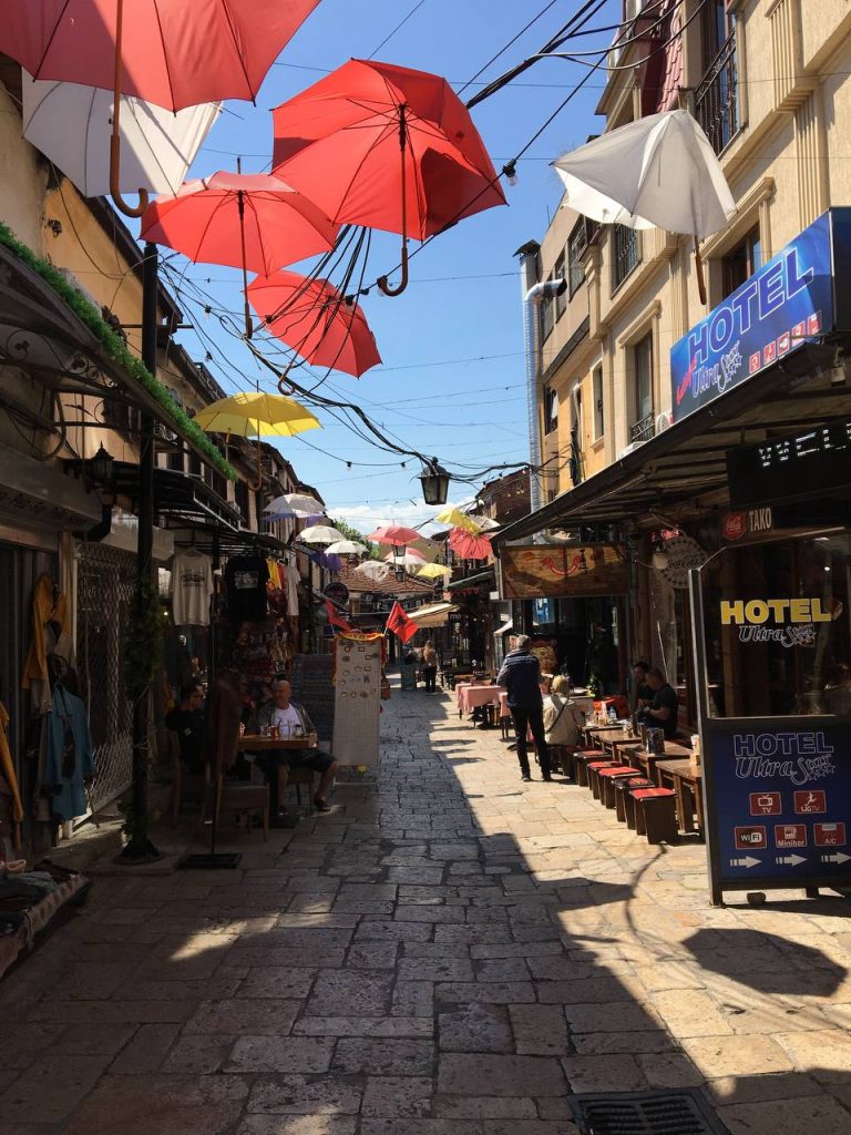 The group strolled through a large bazaar where small traders hawked their various wares. The path was lined with Roma flags, and the people seemed as confident as they were humane. It seemed that in Skopje, the (structural) discrimination against Roma, as observed in other Eastern European countries, is less pronounced. Roma are part of a cultural and political fabric in which various groups have their place.